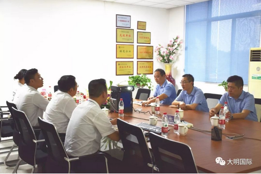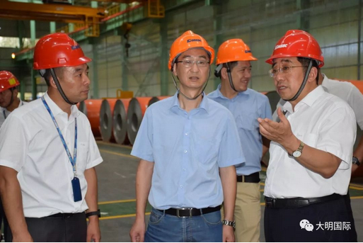 郑舟帆总经理一行首先参观了大明湖北加工中心生产车间,在随后的座谈交流中,他表示愿与大明继续推进战略合作伙伴关系,共同围绕用户需求,坚定不移地推进差异化品种的持续开发,为下游终端客户提供更好的服务。大明国际总裁蒋长虹对宝钢股份武汉钢铁有限公司多年以来的关心、支持和慰问表示感谢,表示通过此次交流再次强化了宝钢股份武汉钢铁有限公司与大明长久而深入的合作关系。