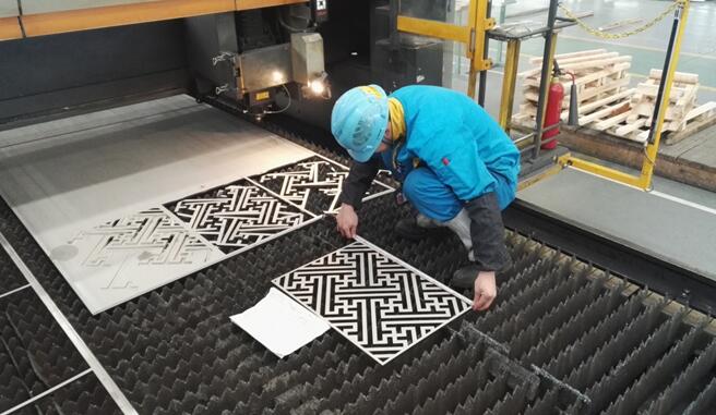 近日,大明杭州万洲加工中心首次承接了一批建筑装饰产品的深加工业务。该产品图案复杂,风格古典,将用于家居装潢。产品加工过程经过开平、切割、磨砂等工序,客户现场监制后对于加工品质表示满意。
