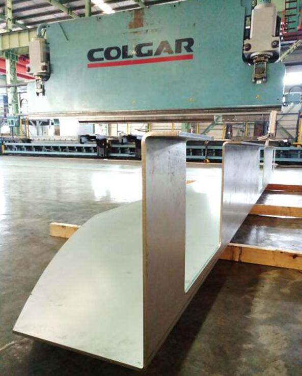 该客户之前一直在寻找可为石油塔项目加工配套的供应商,经过了解,主动找到了天津太钢大明。在进行了多次的现场考察和技术探讨后,客户与天津大明达成合作。此配套产品的材质为进口的317L板材,厚8mm,主要难度在于折弯加工。由于材料规格的原因与加工设备产生干涉,天津大明与客户技术人员共同探讨,制订了反向折弯并两次更换模具的加工方案,解决了难题,保证了质量。目前,首批产品顺利完成制作,客户经过现场全程监制,对天津大明的加工能力给予了充分肯定。