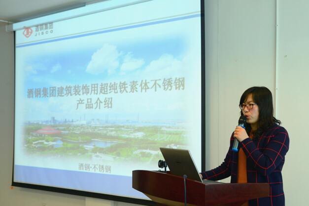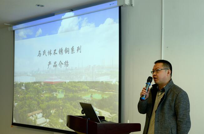 在培训开始前,张锋总监简要介绍了近年来酒钢产品的差异化及市场应用情况,他希望通过此次交流的机会,双方能够积极互动、共同探讨分析遇到的材料、加工等方面的技术问题。喻大刚副总工首先介绍了酒钢在产品研发、售后服务、市场调研等方面所做的工作。他表示将与大明在后期业务过程合作中联手拓展、积极应对,不断提高服务质量。任娟红研究员相信讲解了酒钢建筑装饰用超纯铁素体不锈钢产品的特点和优势等,李聚宝研究员则深入讲解了马氏体不锈钢系列产品的相关知识。