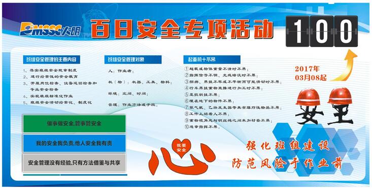 3月8日,大原太钢大明响应集团“百日安全”专项整治活动通知的要求,由总经理钱立牵头,开展了以“强化班组建设、防范风险于作业前”为主题的“百日安全”专项整治活动动员会。
