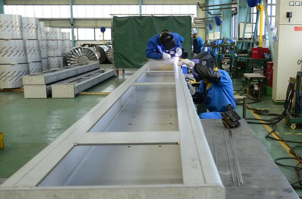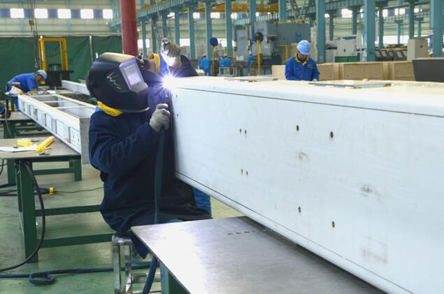 江苏大明自去年为客户在大明钣金试制了3根纺织机械立式大梁后,产品质量被客户认可,今年再次接下14根立式大梁的订单。目前,大明钣金焊接车间一派繁忙。