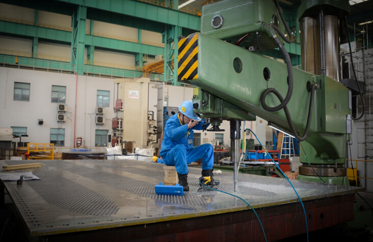 该项目负责人介绍,由于此次管板是钛板和碳钢的复合板,镗孔加工时特别需要考虑到应力变形大等不利因素的影响。此外,该管板为拉丝表面,产品对平面度、光洁度的要求也很高。目前大多数凝汽器管板、管隔板加工企业仍采用传统的机加工工艺,综合加工效率和加工精度已不适应电站设备快速增长和质量提高的需求,而大明重工在设备、流程、经验等方面的综合服务能力,很好地满足了客户在质量、效率、交期方面的要求。