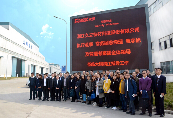 3月28日,浙江久立特材执行董事、常务副总经理章宇旭一行40余人来访大明靖江基地。江苏大明总经理福井勤、大明重工总经理王健、大明科技总经理王小建、江苏大明副总经理金建东、大明重工总经理助理罗智辉等热情接待。