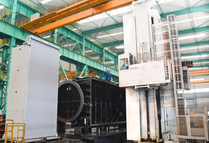 凝汽器是将汽轮机排汽冷凝成水的一种换热器,其传热组件中的管板、隔板、水室是凝汽器的重要部件。水室上除了进出水接口外,还有许多诸如排气口、温度接口、压力接口、检修人孔、液位接口等。在其运行过程中,循环水进入巨大的凝汽器水室后,其整体加工的精度将直接影响传热管水力及水速,如分布不均,将导致凝汽器管束的整体传热效果降低。为保证最终产品的效果,大明重工用意大利英赛280为客户进行了高精度配套加工,产品质量得到了客户的充分肯定。