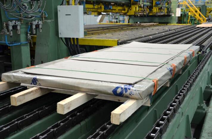 意大利FIMI935裁剪生产线型号为CTL20x2150mm,该机组目前主要进行碳钢薄板、热轧不锈钢、高强钢等要求较高、难度较大的板材开平和切边;其先进的对中监测装置,可保障原卷收卷不齐等情况下的产品长度、对角线的准确性;从上卷到打包全部自动化,全自动打包装置保证了堆垛打包质量。