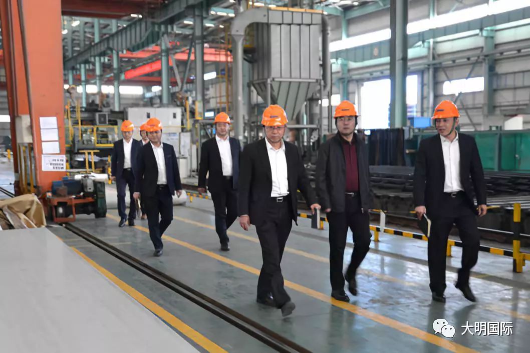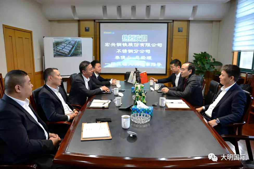 11月11日,酒钢集团宏兴钢铁股份有限公司不锈钢分公司总经理秦俊山一行来访大明,大明集团副总裁路平、不锈钢事业部总经理倪晨、采购总监助理黄潜等领导陪同参观并座谈交流。
