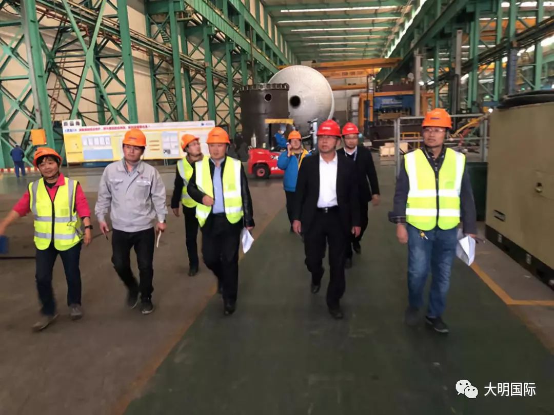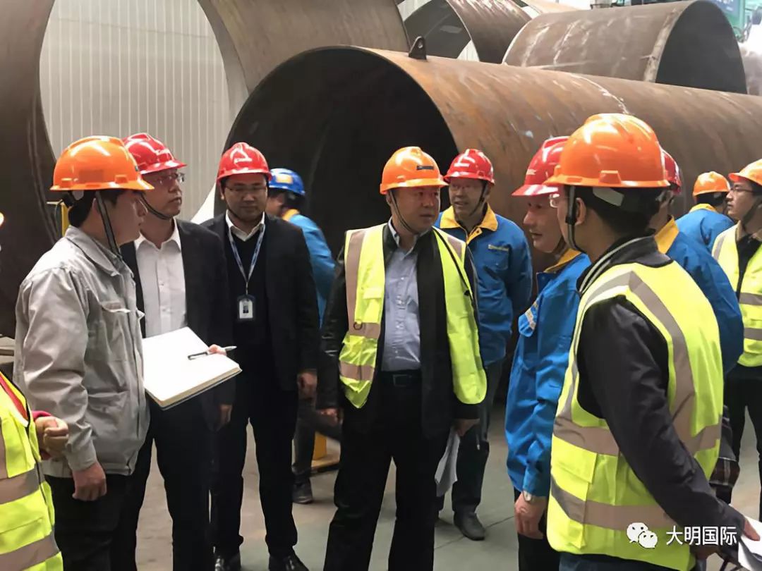 朱晓东副总裁参观了大明重工的生产基地,现场了解了项目设备的制造情况,听取了项目负责人的情况汇报,希望大明重工充分发挥自身优势,加快推进项目进度,为双方后期加强和扩大合作打好基础。