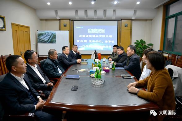 11月29日,北海诚德董事长黄庆周一行来访大明,大明国际董事会主席周克明、集团总裁蒋长虹、副总裁路平、不锈钢事业部总经理监倪晨、采购总监助理黄潜等热情接待。