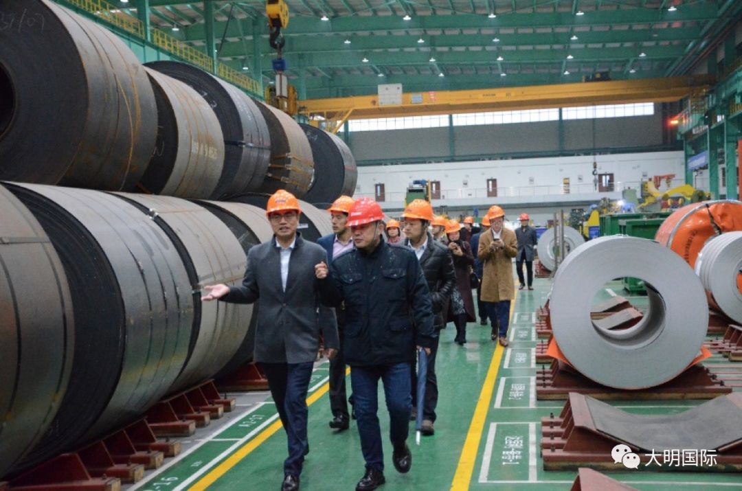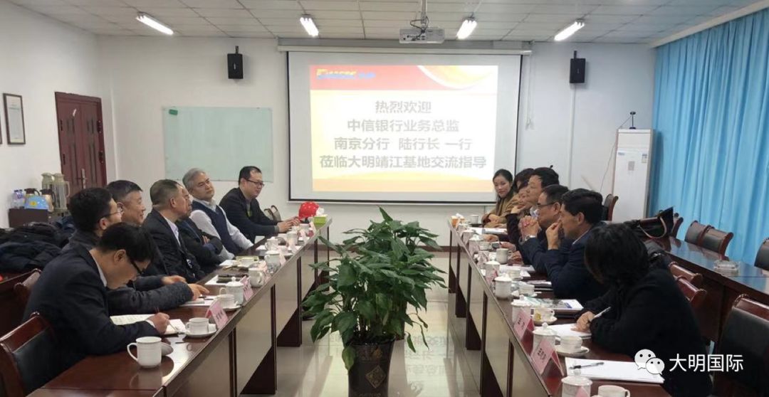 12月25日,中信银行总行业务总监兼南京分行行长陆金根、中信银行无锡分行行长王栋、中信银行泰州分行行长黄建伟等一行来访大明靖江基地。大明国际董事会主席周克明、副主席邹晓平、大明集团资金总监王恩,大明重工总经理王健、副总经理张传勇、副总经理罗智辉、集团资金总监助理华立仁等热情接待。