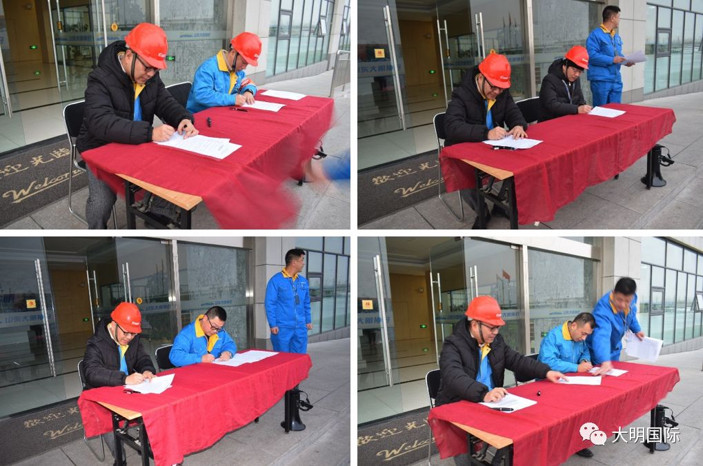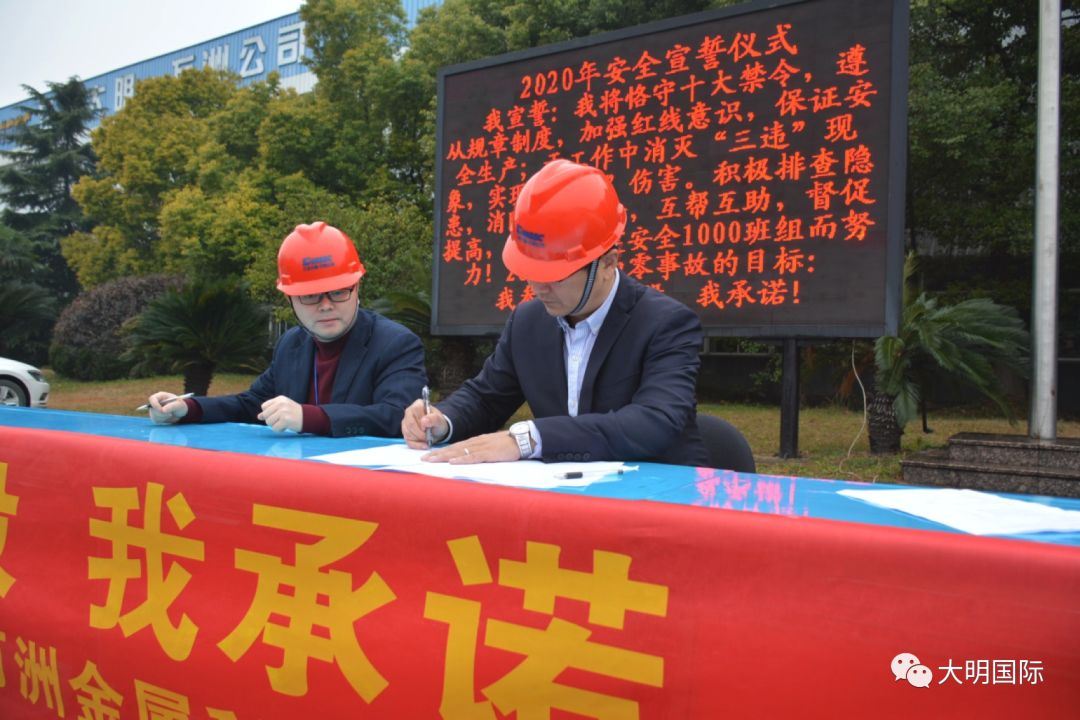 为了提高全体员工的安全意识,加强安全生产工作,防止和减少生产安全事故发生,实现公司年度安全目标,2020年1月2日早7:30,大明泰安加工中心组织了新年安全宣誓暨安全生产责任签订仪式。