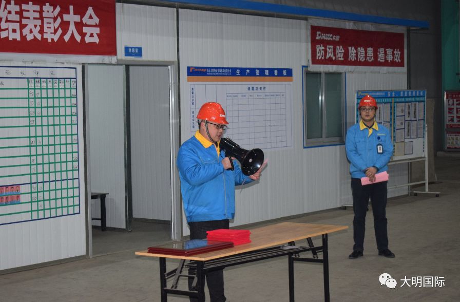 最后,大明泰安加工中心总经理吕世辉进行了总结。他回顾了2019年山东大明所取得的成绩,感谢全体员工为山东大明的建设、发展做出的努力和贡献。同时对公司2020总体发展思路及战略进行了部署,并勉励加工中心全体员工继续以饱满的工作热情和高昂的斗志投入2020年的工作,努力拼搏,再创佳绩。