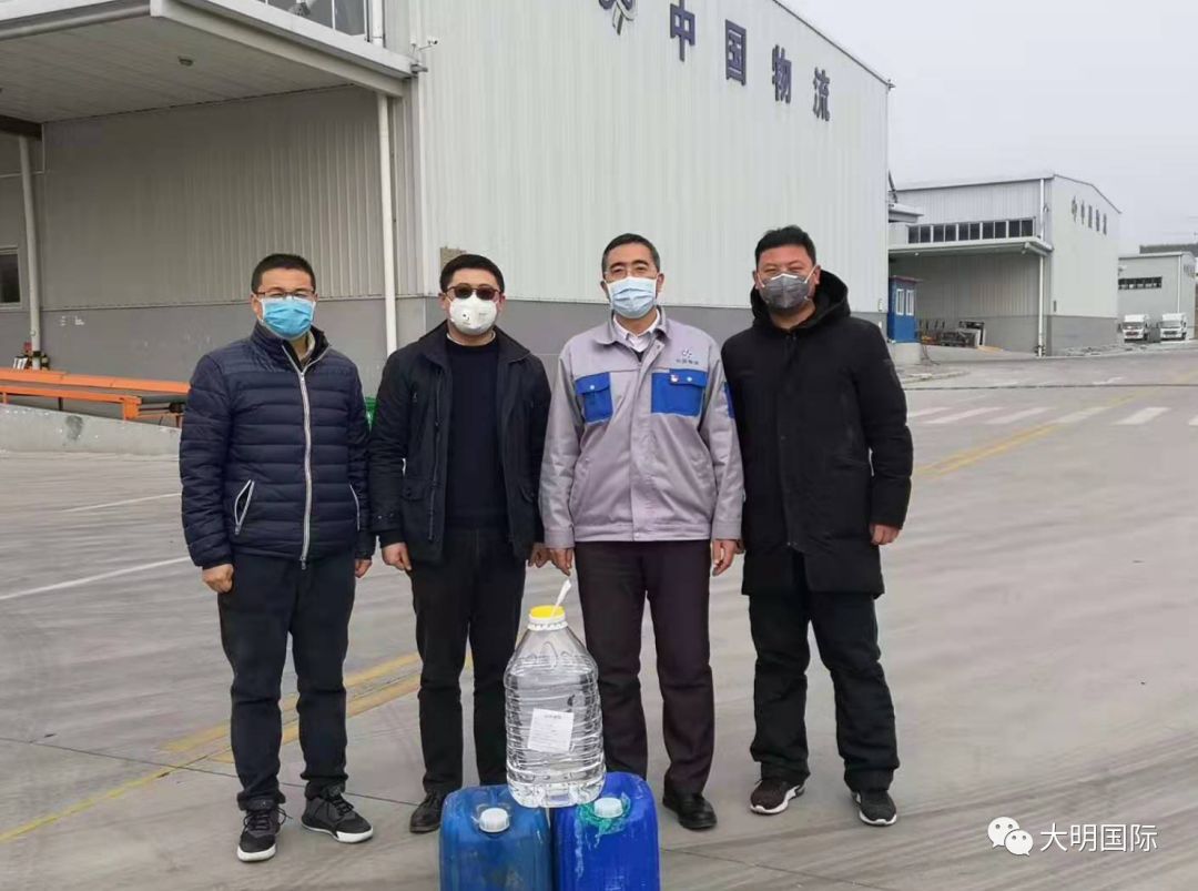 中国物流泰安有限公司向大明泰安加工中心捐赠了84消毒液、医用酒精和口罩