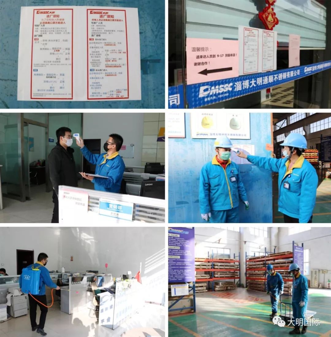 淄博加工中心周彬总经理立即联系上级政府部门--淄博市周村区丝绸路办事处,逐级申请复工事宜。丝绸办各级领导高度重视,并结合省、市、区《全力做好复工复产企业疫情防控工作》、《春节上班后新型冠状病毒感染肺炎疫情防控工作细则》和关于Ⅰ级响应期间疫情防控有关规定,从企业复工复产备案流程、企业复工复产防疫准备措施、企业复工复产期间疫情防控工作等方面对大明淄博加工的复工工作给予指导。