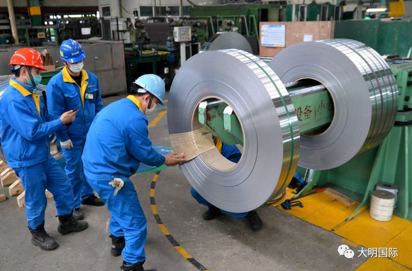 江苏大明生产一部车间内,看到设备有序运转,人员穿梭忙碌,车辆往来穿梭。在热轧横剪853机组,了解到热轧车间的外地员工已全部返岗,生产全面恢复,客户的订单也源源不断。