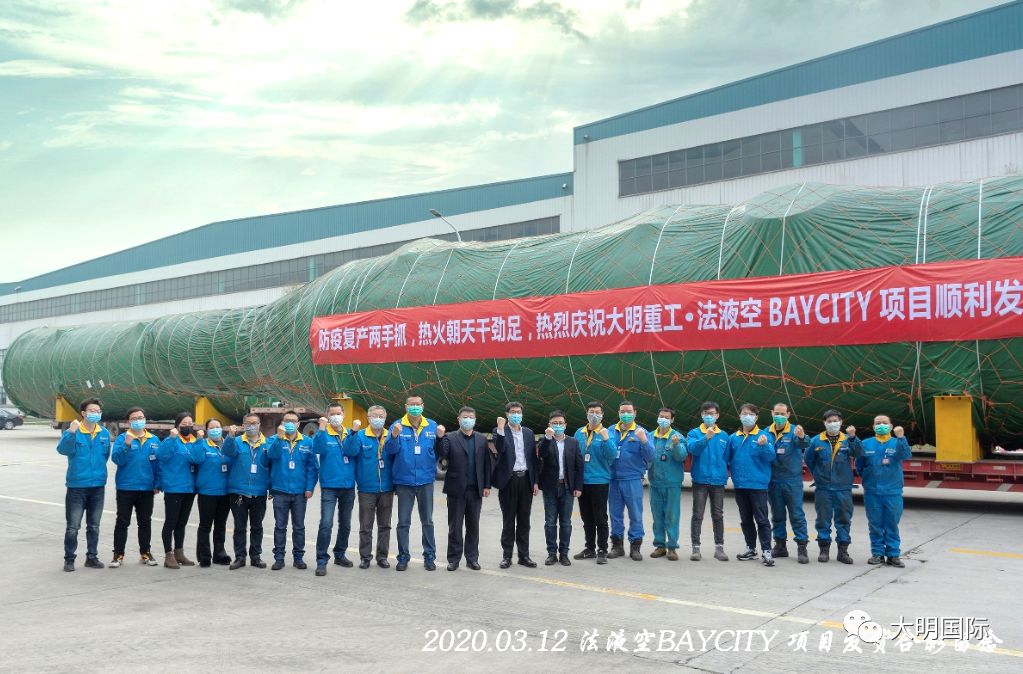 防疫生产两不误,争分夺秒赶进度。大明重工结构事业部在承接了法液空多个内贸、外贸碳钢及不锈钢容器定单后,经过全体努力,近日陆续交付,首批将发往美国和日本等地。
