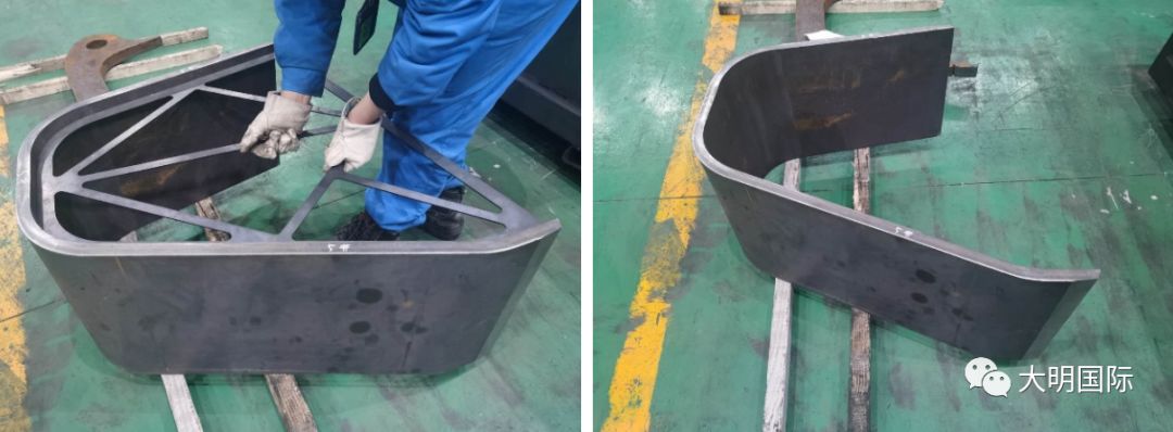 大明重工充分发挥了大明集团加工技术中坚力量的作用,及时派出生产二部技术骨干联动攻关。在充分的协作之下,依靠大明重工强大的装备制造能力,仅用2天时间就制作出了专用模具。有了该特殊模具的加持,单件4-5小时的工时被极限改良压缩至45分钟左右。
