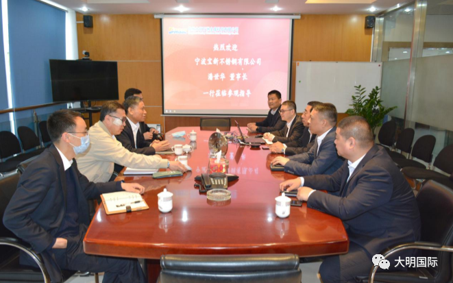 潘世华董事长一行在蒋长虹总裁等领导陪同下参观了杭州加工中心的生产车间,详细了解了设备及加工能力。随后,来宾听取了杭州加工中心目前的运行情况及发展规划。潘世华董事长首先对杭州加工中心在此次疫情期间防疫生产两不误,并且3月份不锈钢销量突破3万吨,创历史新高表示祝贺。他认为大明集团的抗风险能力非常强,对于合作非常放心。蒋长虹总裁表示,大明依托三十多年在不锈钢、碳钢材料、加工和技术服务方面的历史积淀,完全有能力应对各种困难,同时他也对宁波宝新一直以来给予大明的信任表示感谢。双方表示,今后将继续保持密切合作关系,培育差异化优势,服务高端客户,为客户提供优质的产品与服务,实现共赢发展。