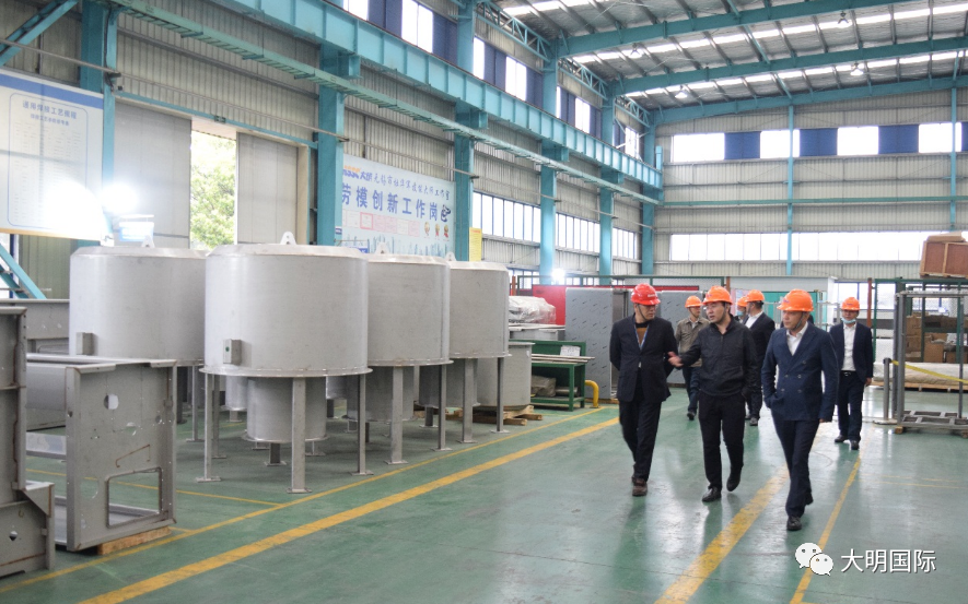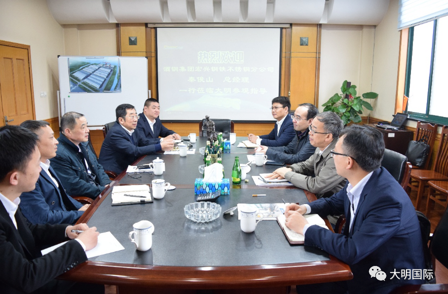 秦俊山总经理一行先后参观了大明靖江基地和大明精工制造车间,对于大明在金属加工制造领域的服务能力和取得的成绩表示赞赏。在座谈中,周克明主席介绍了企业目前的运营情况和后期发展规划,秦俊山总经理介绍了酒钢不锈目前的生产情况及后期产能规划。双方就合作项目情况及进展进行了沟通,并深入探讨了后期如何在产品研发、市场拓展等方面加强合作,一致同意加大市场开发力度,携手服务新领域,参与海内外优秀项目建设,实现共赢发展。