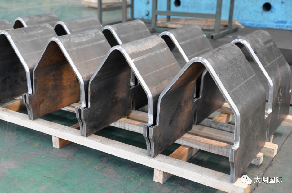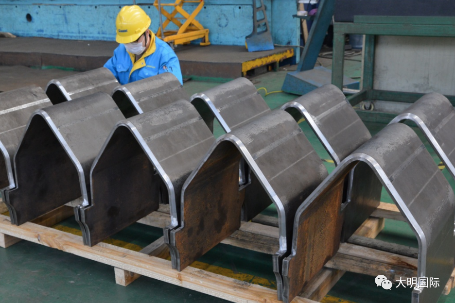此批部件400多件,选用了16mm、20mm厚度的Q345B材料。加工使用了靖江加工中心的碳钢材料和火焰切割,江苏大明进行整形、机加工坡口,大明精工进行折弯等加工。客户对坡口的刨边、折弯后的间隙等都有严格的要求。业务部门联合相关部门的技术和生产部门,共同讨论制定专门工艺,在协同加工中,严格遵照工艺要求,前期成品并已通过客户检验。