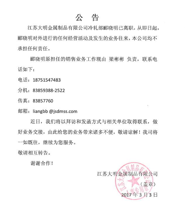 关于郦晓明离职公告
