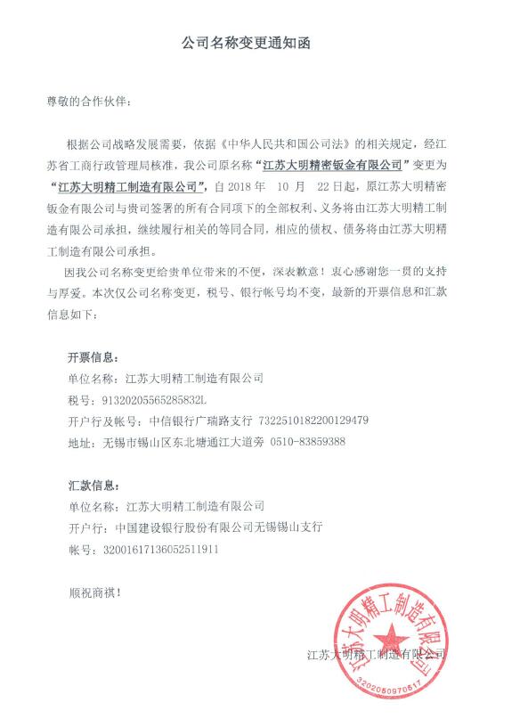 公司名称变更通知函