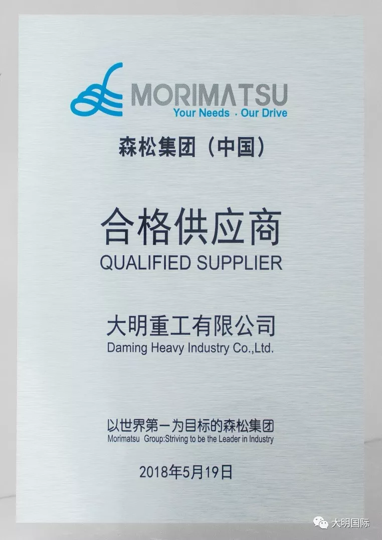 Through continuous deepening of cooperation, Morimatsu group has a better understanding of the business model, processing technology and equipment capacity of Daming heavy industry. After many tests, it has decided to grant Daming heavy industry the qualified supplier.