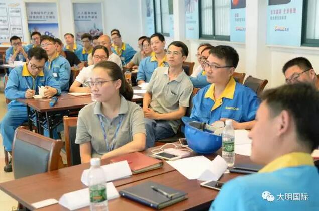 张浦的“革新”理念深入人心,江苏大明正推进的“精益生产”也受到了张浦领导的关注,此次张浦继前期走进大明送技术培训之后再次送来管理培训,让大明人在炎炎夏日饱饮了知识的甘泉。在生动活泼的培训中,大家不仅学到了新知识,也更加紧密了生产、设备、仓储、制造管理等部门的关系。培训结束,江苏大明总经理助理陈剑铭代表公司向张浦表达了谢意,他希望双方今后能多多交流、深化合作,携手共同成长。