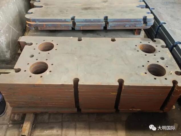 板式换热器产品两侧的压紧板普遍采用Q235碳钢中板,厚度从20mm到70mm不等,一般均需进行火焰切割加工。天津大明火焰切割设备台面长32m,宽4m,切割厚度20-100mm,设备性能优良,加工精度、边口质量、加工效率均具有很强的市场竞争力。再加上天津大明碳钢原料库存充足,还可以为客户提供产品套裁设计,提高材料利用率,降低成本,受到客户的普遍好评。