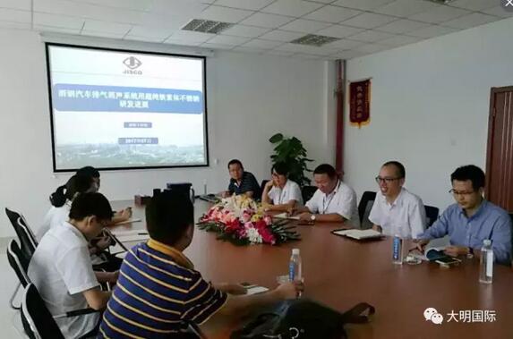 ?? 近日,佛山市酒钢博瑞钢业有限公司总经理高航涛先生带领其司技术专家进行来到湖北大明,就《汽车排气消声系统用超纯铁素体不锈钢研发进展》进行了培训和交流。