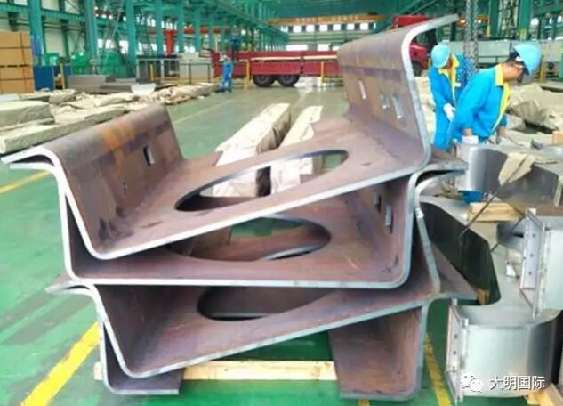 该客户首次与大明钣金合作,首单即采用厚度20mm的碳钢材料。大明首先对材料进行火焰切割下料,再经折弯成型。该工件工艺要求内R50,在如此大的R角的工件控制下保证±1mm的公差,对加工是一项严峻考验。大明钣金工艺部门采用多次样块测试,结合开料实际板厚,精确计算出模具的延伸量,并确定了合理的加工工艺与流程,在钣金“明星设备”1600T折弯机的配合下,成功加工出令客户满意的成品。