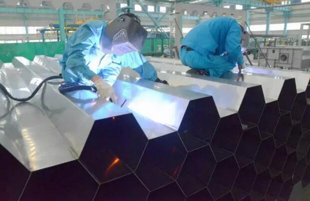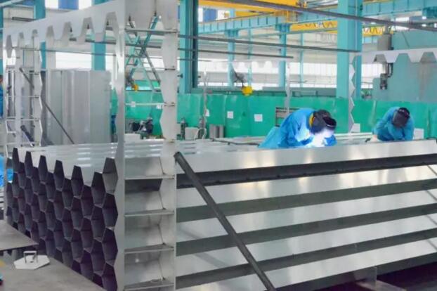 此加工项目有江苏大明工程服务部承揽,大明钣金负责生产加工,产品使用双相钢2205材料,管壁均为2800mm*3600mm*6000mm规格,厚度分别从2.0-16.0mm共三种规格,最终将拼焊成蜂巢状。此次加工工艺涉及分条、开平、切割、折弯、焊接等工序,在加工过程中,生产技术部门反复推敲、优化方案,实现了保质、有序的推进。通过本次加工,大明对部件大、合成件多的产品加工又积累了经验,同时还在分条与焊接方面实现了工艺的创新。