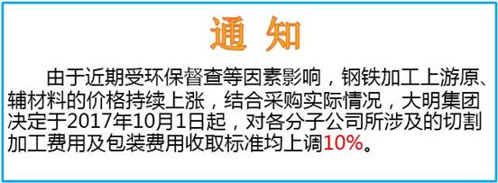 虽然在切割加工及包装费用上价格上调,大明对您的服务质量绝对不会打折!