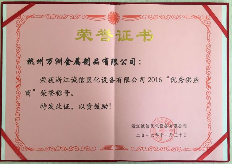 日前,杭州万洲(大明杭州加工中心)应邀参加浙江诚信医化设备有限公司的年度供应商大会,会上被授予“优秀供应商”荣誉。浙江诚信与杭州万洲合作多年,近年来,双方不断扩大在加工领域的合作,在深化合作的过程中不断实现共赢。2016年,浙江诚信在杭州万洲的采购量相比2015年增长了75%。凭借丰富的钢种资源、出色的加工能力以及优质的服务,杭州万洲被评为“优秀供应商”,标志着客户对于杭州万洲的高度认可。