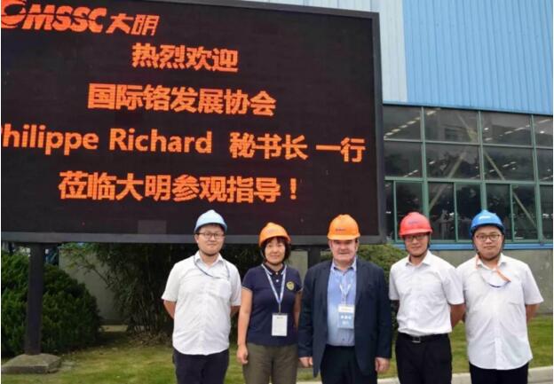 9月27日,国际铬发展协会(ICDA)秘书长Philippe Richard、中国区顾问孙莹一行来访大明,江苏大明总经理福井勤、集团宣传策划部部长李赛等热情接待并陪同参观。