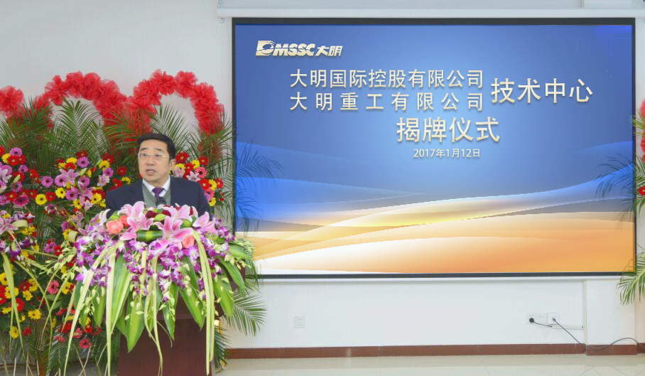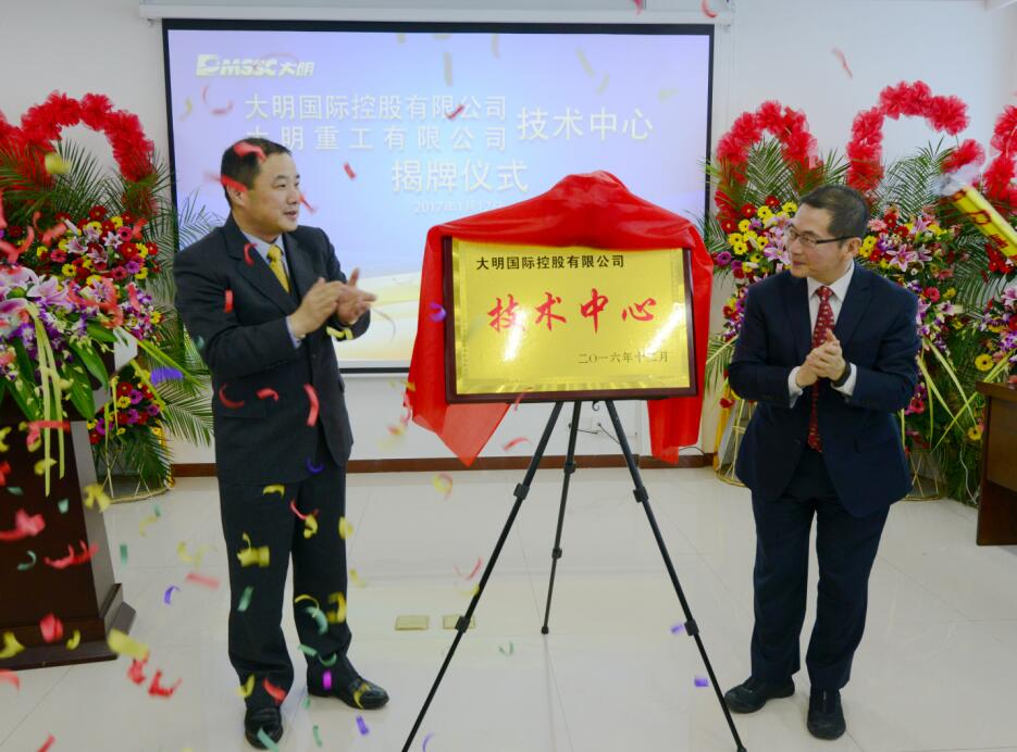 1月12日下午,大明国际与大明重工技术中心揭牌仪式在大明靖江基地隆重举行。大明集团总裁周克明、副总裁邹晓平、蒋长虹、集团生产技术总监唐中海、集团人事行政总监夏伟忠、集团品牌策划总监任凤华,以及集团和大明重工技术中心相关领导、大明重工和大明科技部长级以上管理人员共计50多人参加了活动。