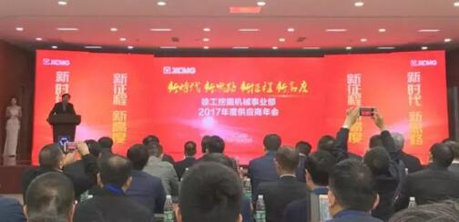 乘着习总书记视察的东风,12月14日,徐工集团挖掘机械事业部召开主题为“新时代、新思路、新征程、新高度”的2017年度供应商大会,近200名供应商代表齐聚徐州,总结经验,谋划未来。大明国际副总裁蒋长虹、大明集团碳钢事业部副总经理李成、大明重工总经理助理罗智辉等受邀参会并领奖。