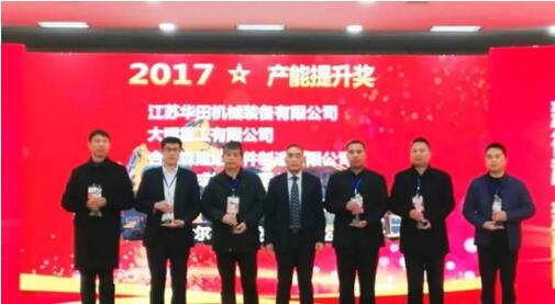 大明重工总经理助理罗智辉(左2)领取“产能提升奖”