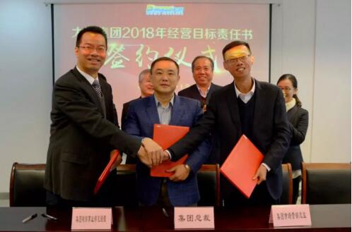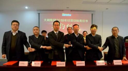 会上,集团各业务板块及子公司负责人首先签署了目标责任书,随后周克明总裁发表了讲话。他首先对2017年的经营情况进行了总结,并指出了工作中的不足之处。他要求经营管理团队面对责任和目标要勇于担当;要养成检讨、评估、改进的习惯;要善于学习,通过走出去、深入下去,互动交流、弥补短板;要发挥各板块、各加工中心服务及资源的协同优势,为客户提供优质的差异化服务。他勉励全体管理者要拥有使命感和自豪感,面对挑战,用无坚不摧的决心、信心,一步一个脚印的踏实努力,去实现2018年的经营目标并力争更大的发展,为大明三十周年献礼!