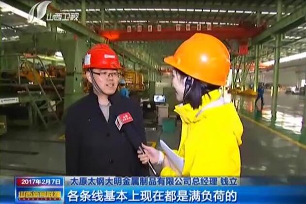 2月7日18:30,山西卫视《山西新闻联播》栏目播出《开发区改革:紧锣密鼓马蹄疾》的重点报道。报道通过对政府相关领导和山西太钢大明总经理钱立的采访,以及对太原太钢大明繁忙的生产加工现场的介绍,展现了太原太钢大明的优势、干劲和前景。