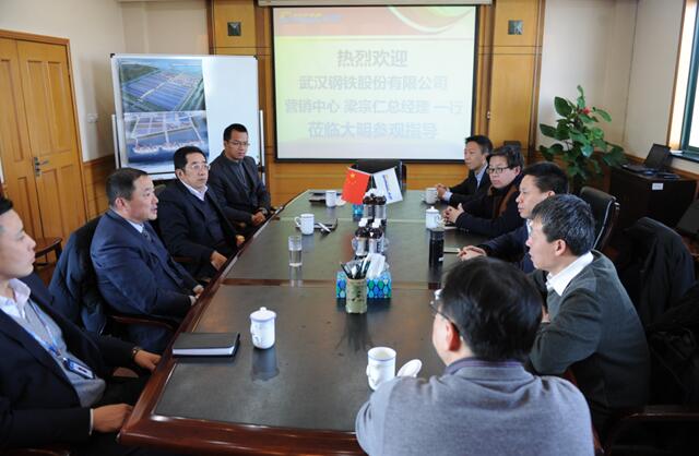 2月9日,宝武钢铁集团武汉钢铁股份有限公司营销中心总经理梁宗仁、营销管理部副部长马金光、华东区域总经理黄飞等来访大明,大明集团总裁周克明、副总裁蒋长虹、碳钢事业部总经理陈宁、大明协好供应部部长邓梁峰热情接待。