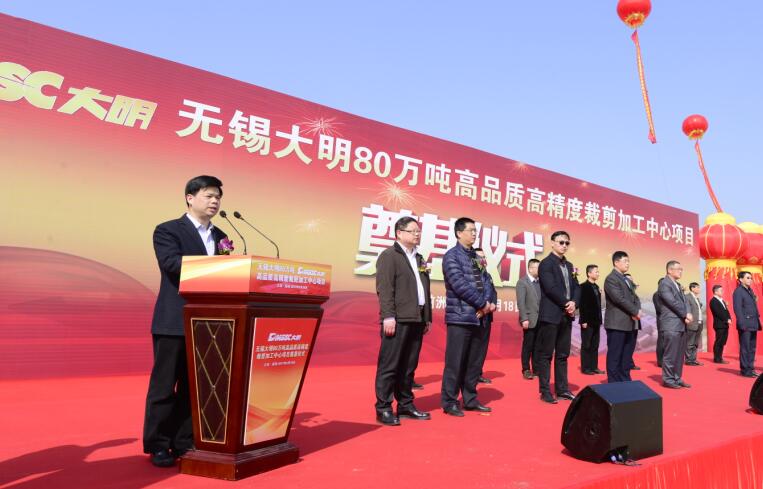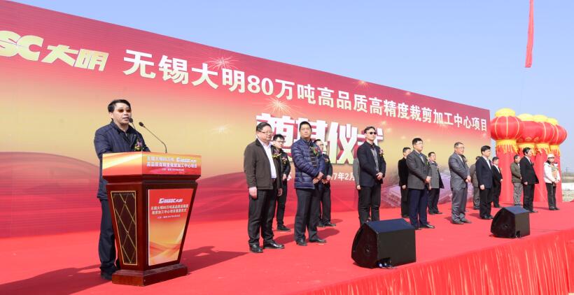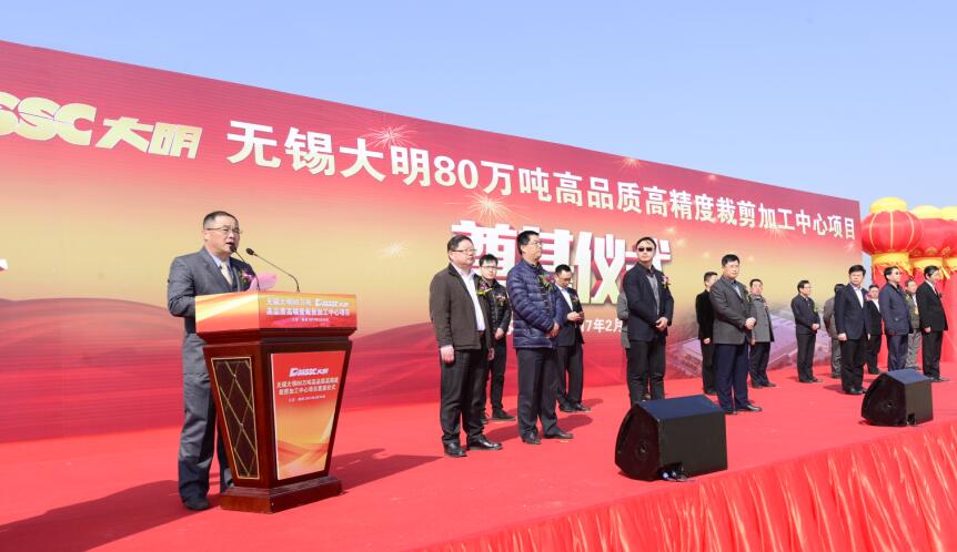 在仪式上,大明集团总裁周克明介绍了大明集团及大明无锡加工中心80万吨项目的整体情况。大明目前已经拥有无锡总部、靖江、杭州、武汉、太原、天津、淄博、泰安八大钢铁加工中心以及大明重工、大明精密钣金两个深加工工厂。无锡大明加工中心是大明集团在全国设立的第九家钢铁加工中心,它以高精度、高品质的碳钢、高强钢和不锈钢材料裁剪加工为主业,服务客户包括工程机械、专用车、机械设备、环保电力、压力容器、化工装备等行业企业。项目在原有基础上新购置土地60亩,总占地面积达4万多平米,总建筑面积2.5万平米,规划建设周期为8个月。项目计划投资总额为5亿元,其中固定资产投产超过3亿元,规划年加工销售钢铁产品共80万吨,全部达产后年销售收入可达40亿元。