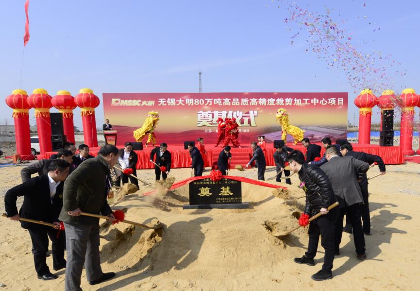 2月18日上午,无锡惠山区前洲工业开发配套区钢铁路现场彩旗飘扬、人潮涌动,锣鼓与礼炮齐鸣,大明金属制品无锡有限公司80万吨高品质、高精度金属裁剪加工项目奠基仪式隆重举行。惠山区政府领导以及来自钢厂、下游制造企业、合作伙伴的代表共同出席了活动。