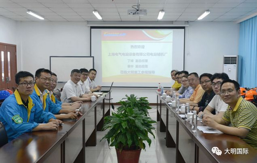 6月1日,上海电气电站设备有限公司电站辅机厂副总经理丁峰、秦华一行8人来访大明重工,大明重工总经理王健、副总经理罗智辉等热情接待。