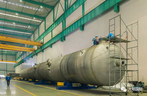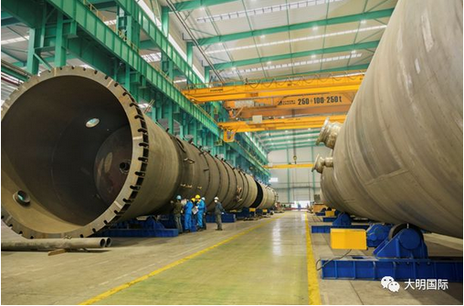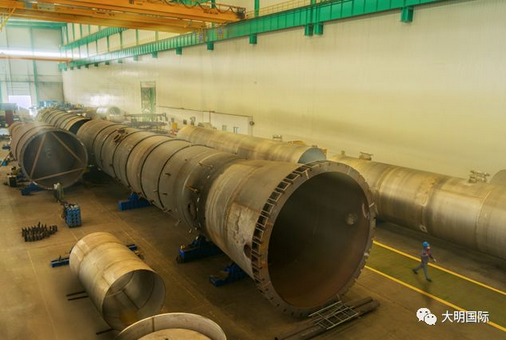 2017年7月,浙江石化4000万吨/年炼化一体化项目一期工程正式开工。项目一期规模为2000万吨/年炼油、400万吨/年对二甲苯、140万吨/年乙烯及下游化工装置。大明重工承揽了该项目中五个装置共31台碳钢塔器的制造任务,总重一万余吨,单台直径最大达8米,最长达100米,单台最大重量1000吨以上。依托大明国际材料配供的优势,加上大明重工超强的装备制造能力,该项目按照工期有序推进。