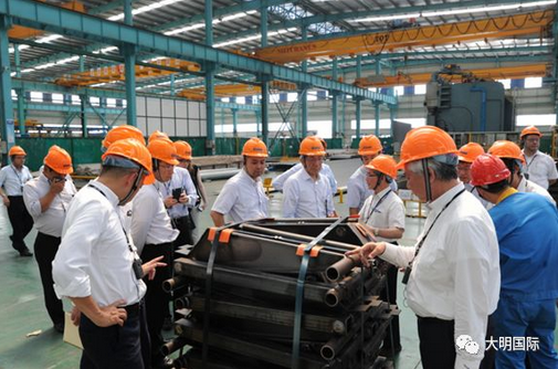 阪和代表团先后参观了大明重工、靖江加工中心和江苏大明、大明钣金生产车间,之后在总部进行交流。通过现场参观和会议的充分交流,阪和代表对于大明有了更深入的了解。双方明确了以全方位、集团层面的合作推动市场开发的目标。通过此次交流,增进彼此了解,提升了战略合作的水平。
