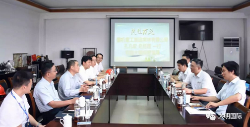 6月14日,国机重工集团常林有限公司总经理、党委副书记孔凡宏、结构件事业部总经理花荣、副总经理陆标权等一行来访大明,大明国际董事会主席周克明、副总裁路平、靖江加工中心总经理王小建、集团碳钢事业部副总经理李成、大明钣金副总经理陆春雨、靖江加工中心副总经理胡文捷热情接待。