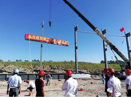 继7月12日第一根钢结构立柱的顺利吊装后,7月14日上午,位于嘉兴经济开发区的大明嘉兴加工服务中心第一根横梁也成功就位,这充分体现出了项目建设的“大明速度”。