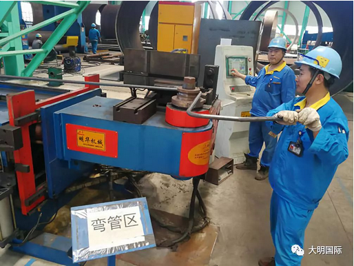 去年9月份,大明重工在集管机加工方面取得突破。随即,公司组织工艺、技术、品管等部门的力量重点突破与之配套的蛇形管加工难题。该部件管材全部为德国进口15Mo3的管材,该部件属于高压设备,其水压试验压力为66MPa。生产二部骨干人员在技术、工艺、质检以及客户的协助下,勇于创新,完善工艺,顺利完成了弯管、水压、全位置焊、探伤等重点工序的突破,确保了流水线制作的顺利进行。经过努力,第二套蛇管制作中弯管一次合格率100%,水压一次合格率100%,焊接一次合格率达到99.7%。该项目的成功配套使大明重工在锅炉高压管件制作方面积累了重要经验。