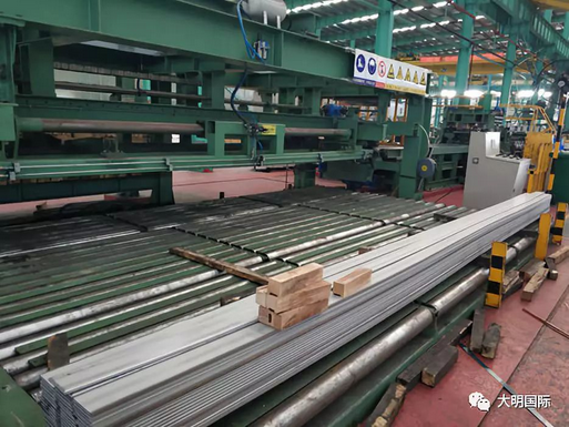 此次大明湖北加工中心将10mm*1530mm*C的毛边卷料用意大利FIMI 3-14分条设备单次排刀直接剖分15条100mm宽的卷带(目前大多数分条设备需要两到三次排刀分条才能完成,并且还无法保证15条的成品净料),其精度达到0.2mm,然后再由大明自主研发制造的2-12扁钢设备开平、去除毛刺并使其成为平整度和扭曲度小于3mm/6m的高精度产品(目前的大多扁钢设备只能加工到8mm,超过8mm的只能进行切割或剪板再矫平加工)。采用此种加工方式为客户节省了20%-50%的成本,而且缩短了交货周期,提高了产品质量,增加客户产品的市场竞争力。